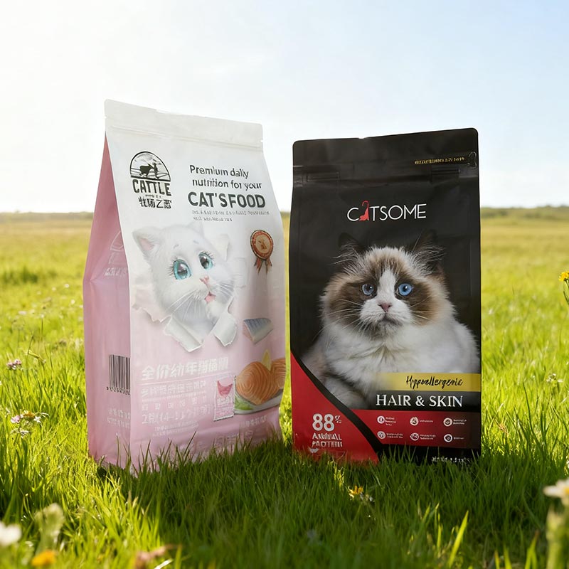 Jindes dampkogte kattefoder-emballagepose er lavet af flere lag materialer af høj kvalitet. Det yderste lag